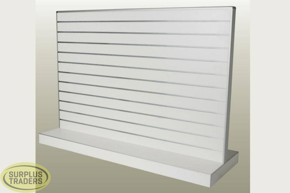 Slatwall White Double Sided Mobile Gondola on Plinth