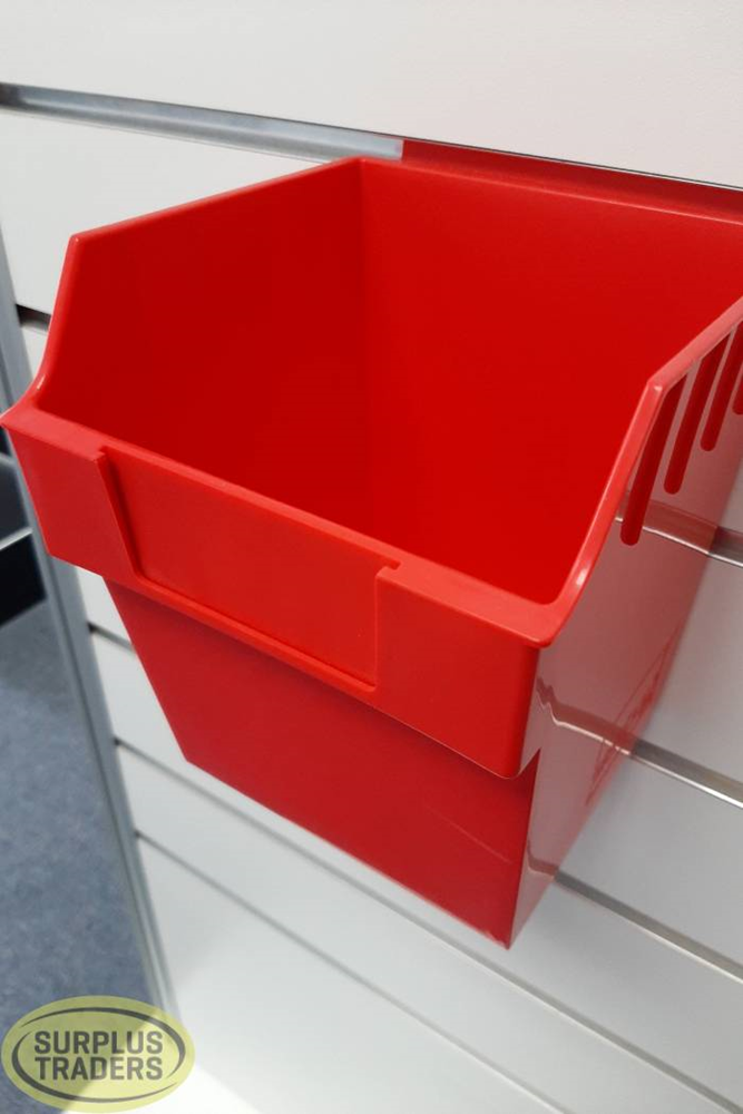 New Slatwall Plastic Parts Box 150mm long x 150mm wide x 178mm highColour: RedDesigned to clip into Slatwall panels Call Us or Enquire Now for Pricing and Stock AvailabilityWe will exchange/refund or credit where new goods have been incorrectly described/are faulty or different from the example shown.We do not refund if you have changed your mind/have chosen the incorrect size/colour etc..
