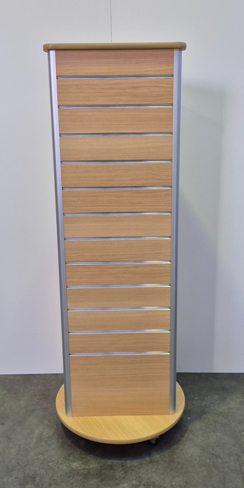 1600H x 475W x 475D on a rotating (metal turntable) panel base with castor wheels